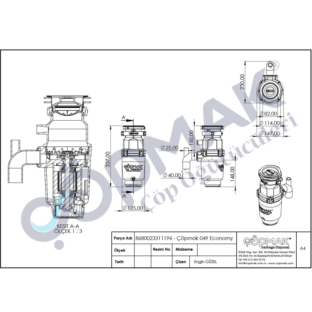 | Ölçüler | Çöp Giriş Ağzı 90mm Ağırlık 3,8 Kg |