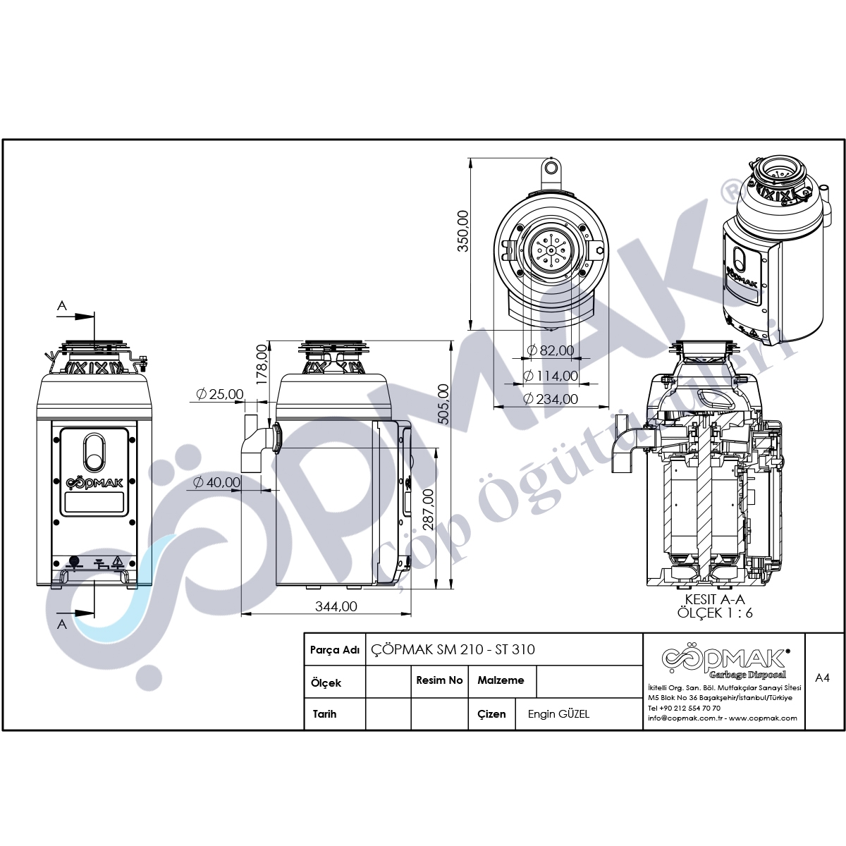 Ölçüler : Çöp Giriş Ağzı 90mm Y:505 mm G:280mm Ağırlık 28 Kg