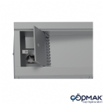 4) Cihaz çalışırken koruma kapağı açıldığında cihazın çalışmasını durduran 24 volt emniyet switch sistemi ve acil stop butonu