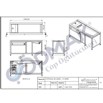 3) 1800x700X850 mm ebadında 304 kalite paslanmaz koruma kapaklı öğütücülü dolap