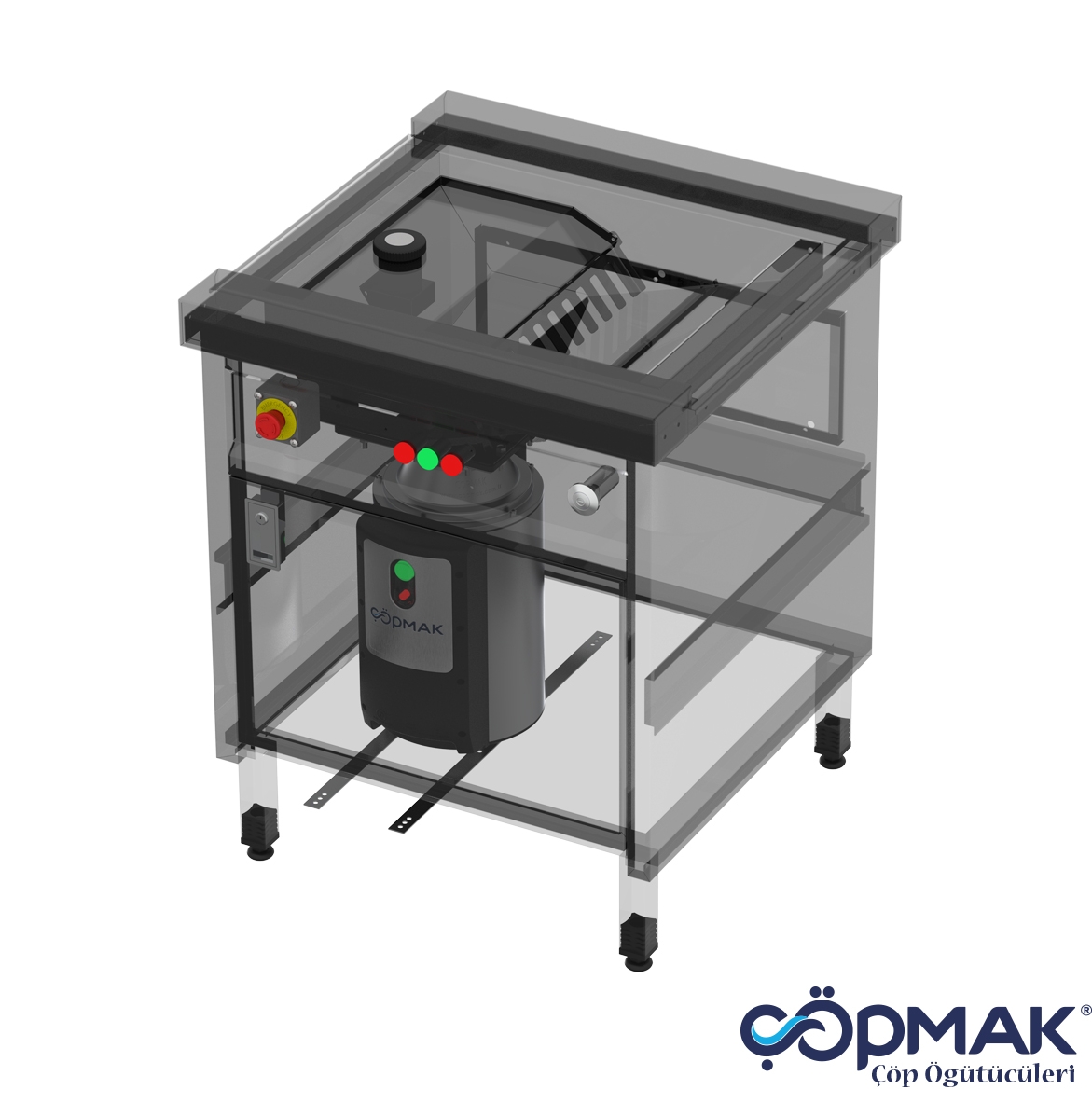 5) 700x700X850 mm ebadında 304 kalite paslanmaz koruma kapaklı öğütücülü dolap