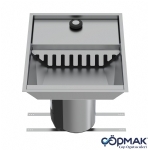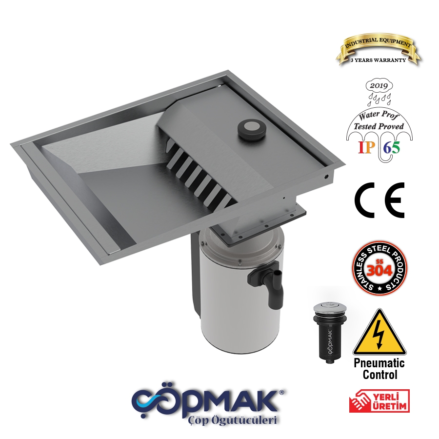 12) 200x200 mm extra geniş çöp giriş ağzı ve 50 mm çapında pis su