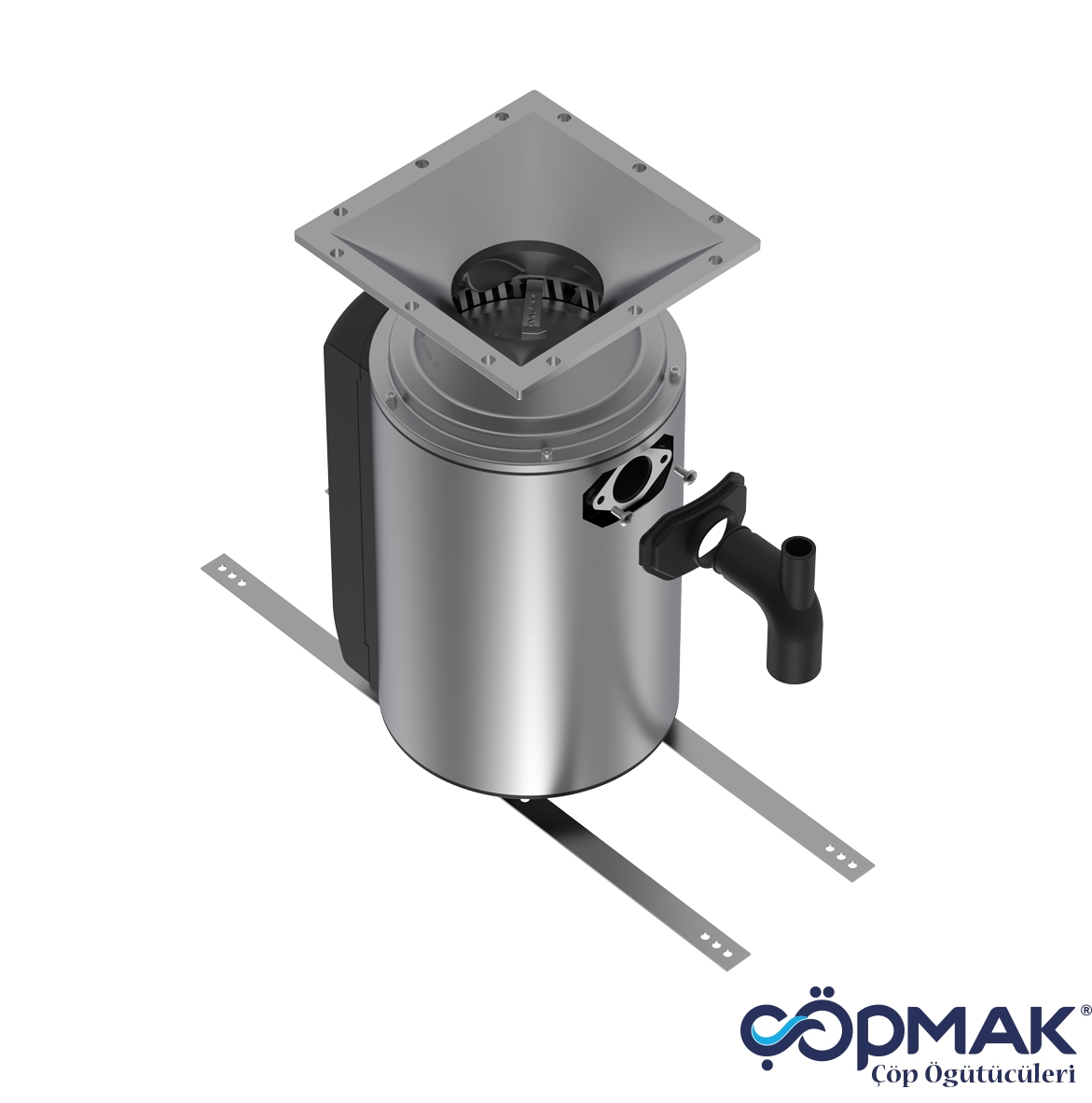 6) 200x200mm paslanmaz flanşlı çöp giriş ağzı ve 50 mm çapında pis su tahliyesi